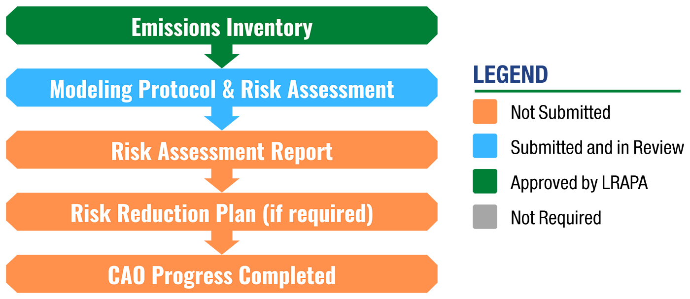 - Each step of the CAO risk assessment process has a section that includes LRAPA’s communications and deliverables from the facility.